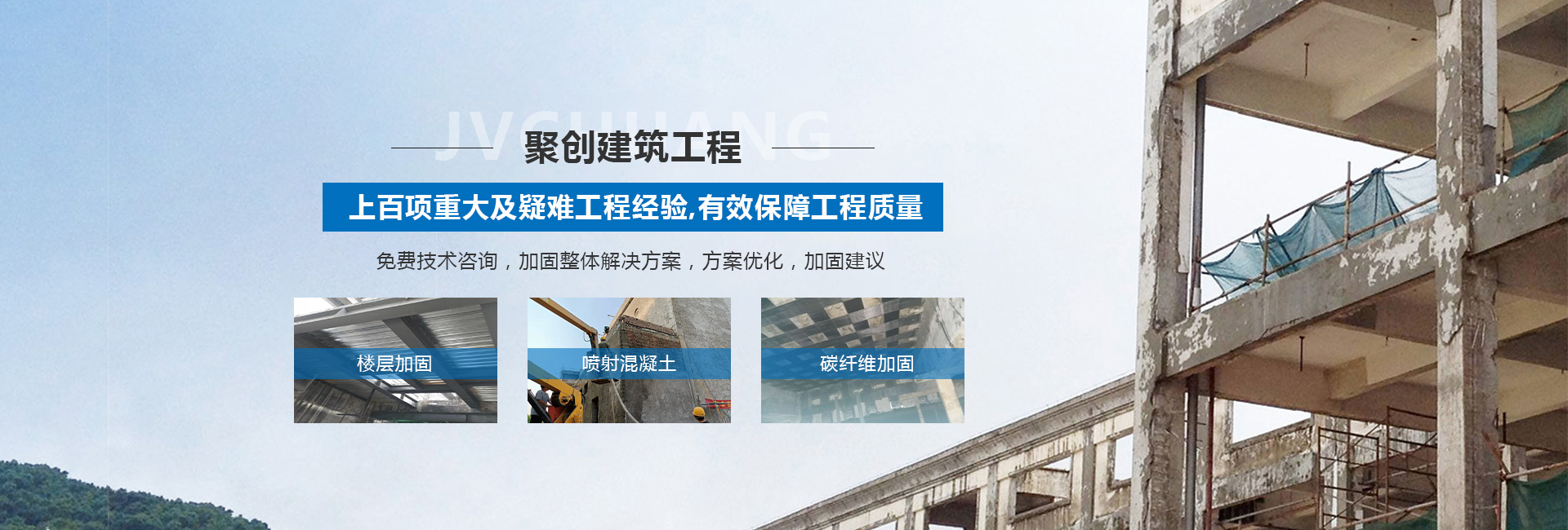 山西聚創(chuàng)建筑工程技術(shù)有限公司是一家涉足建筑工程改造加固、基礎(chǔ)加固、樓房糾偏、橋梁結(jié)構(gòu)加固補(bǔ)強(qiáng)、鋼結(jié)構(gòu)加固與安裝、靜力切割拆除、樓房增層、抗震加固、裝飾工程、工程檢測(cè)、設(shè)計(jì)、加固材料產(chǎn)品研發(fā)和新技術(shù)推廣或技術(shù)咨詢服務(wù)型加固企業(yè)等諸多領(lǐng)域。